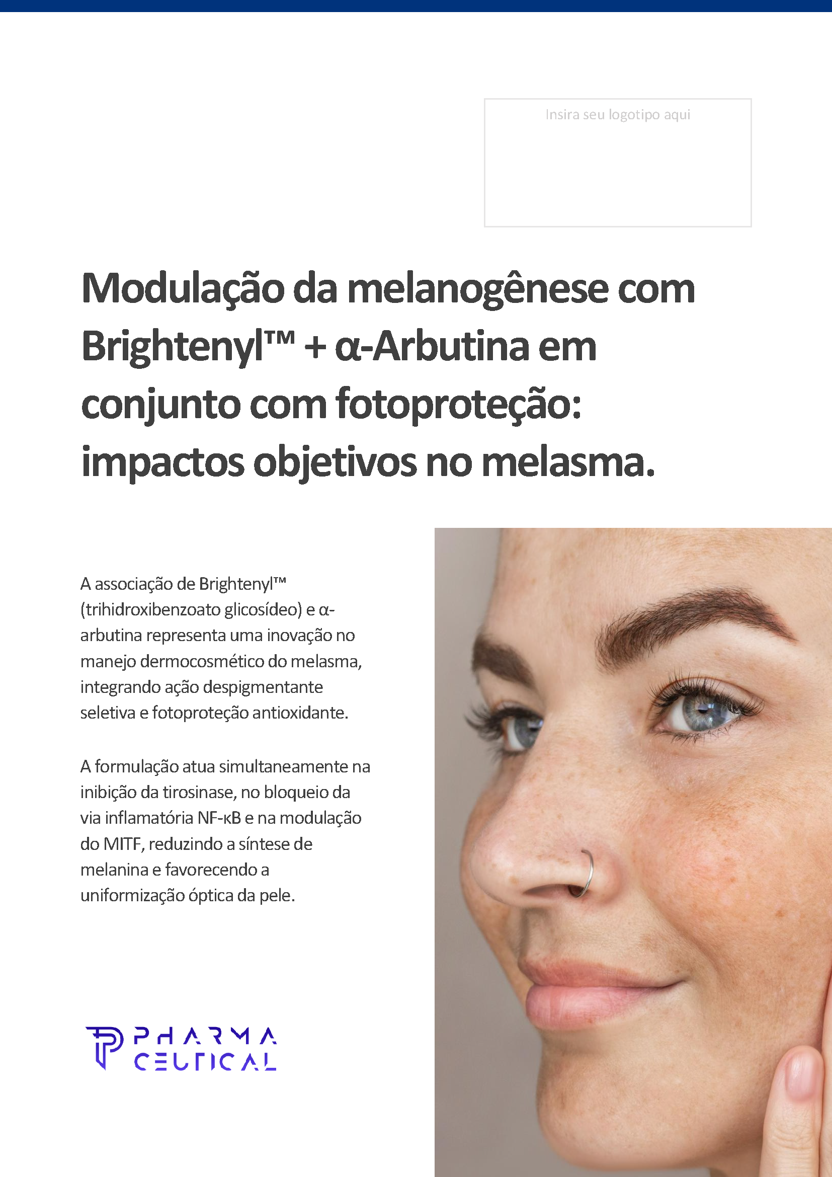 A associação de Brightenyl™ (trihidroxibenzoato glicosídeo) e α-arbutina representa uma inovação no manejo dermocosmético do melasma, integrando ação despigmentante seletiva e fotoproteção antioxidante.